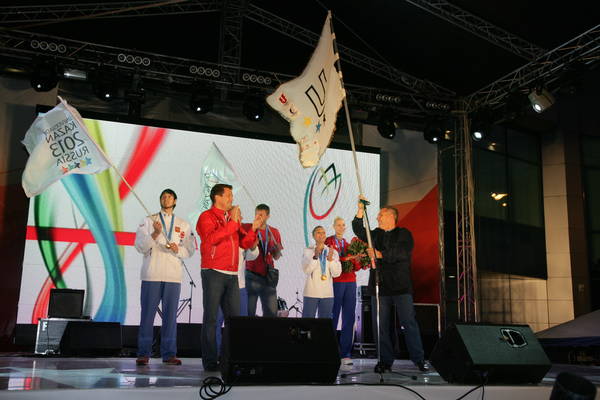 Церемония встречи флага Универсиады. Принимает участие Президент Республики Татарстан Р.Н.Минниханов: фото М. Козловского