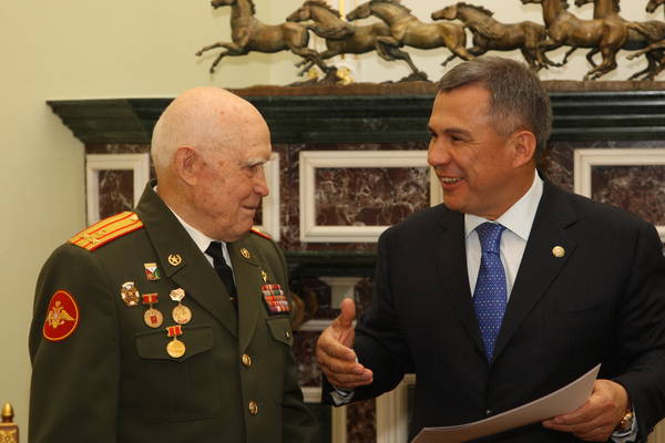 Встреча Президента Республики Татарстан Р.Н.Минниханова с Героем Советского Союза Ахтямовым Сабиром Ахтямовичем по случаю 85-летия со дня его рождения Фото М. Козловского