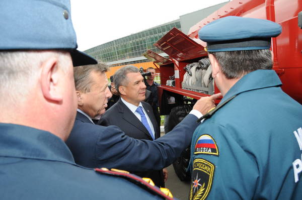 Вручение40 автомобилей УАЗ государственным бюджетным учреждениям РТ «Лесничество» и 50 автомобилей ЗИЛ подразделениям противопожарной службы РТ. фото Р.Кадырова.