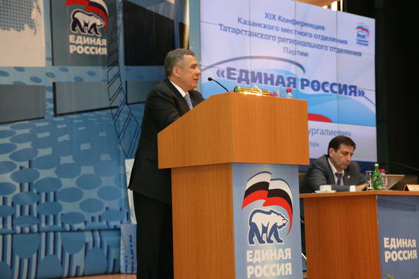 Отчетно-выборная конференция Казанского местного отделения Всероссийской политической партии «Единая Россия». Принимает участие Президент Республики Татарстан Р.Н.Минниханов. Фото М.Козловского