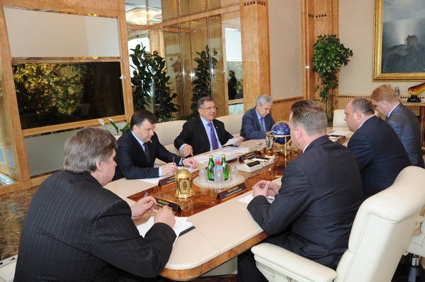 Встреча Президента Республики Татарстан Р.Н.Минниханова с начальником Горьковской железной дороги Анатолием Федоровичем Лесуном.фото Р.Кадырова.