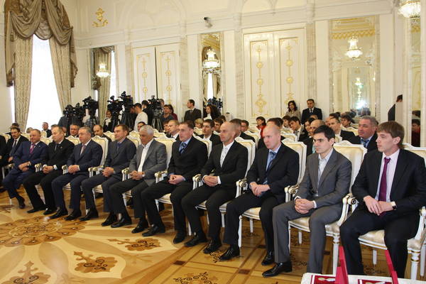 Встреча Президента Республики Татарстан Р.Н.Минниханова с командой «Динамо» (Казань) – чемпионом России по хоккею с мячом. Фото М.Б.Козловского