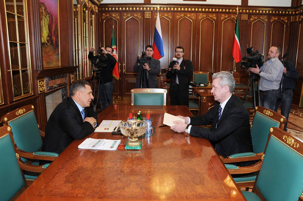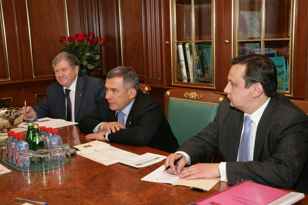 Рабочая встреча Президента Республики Татарстан Р.Н.Минниханова с Председателем Правления ОАО «НОВАТЭК» Леонидом Викторовичем Михельсоном. Фото М.Б.Козловский