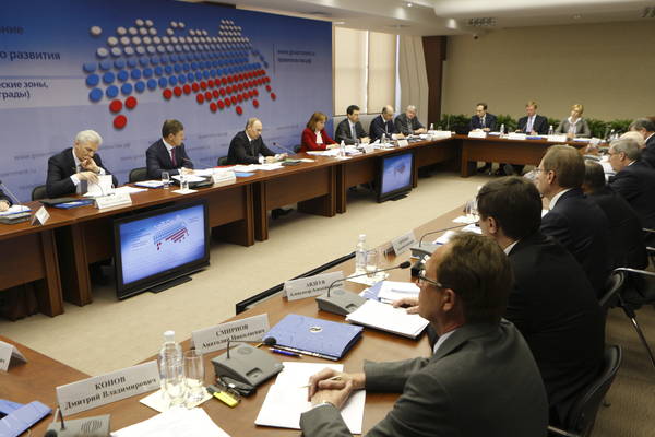 Совещание по вопросу совершенствования инструментов инновационного развития в регионах. Проводит Премьер-министр Российской Федерации В.В.Путин. Принимает участие Президент Республики Татарстан Р.Н.Минниханов. Автор: Валерий Доронин