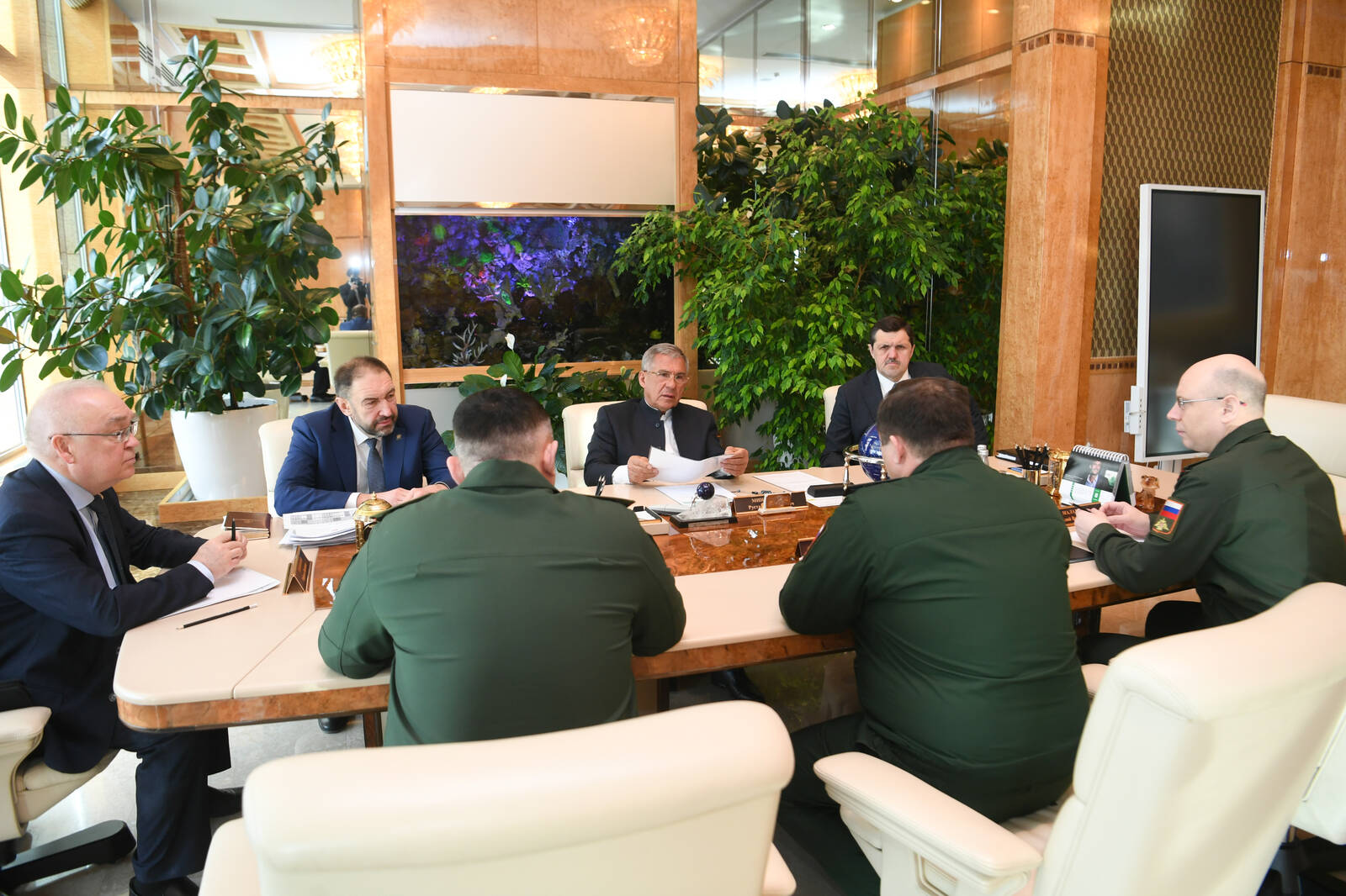 Представление Раису Республики Татарстан Р.Н. Минниханову военного комиссара Республики Татарстан. Принимает участие Премьер-министр Республики Татарстан А.В. Песошин.