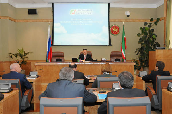 Совещание по вопросу "О ходе реализации плана перехода на предоставление государственных, муниципальных и социально значимых услуг в электронном виде в Республике Татарстан". Фото Ринат Сафин