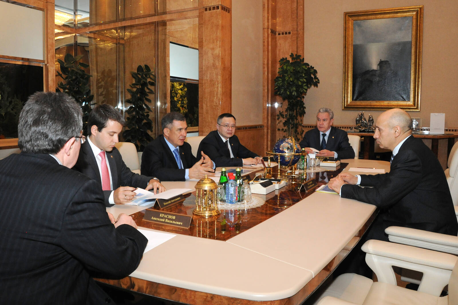 Встреча Президента Республики Татарстан Р.Н.Минниханова с начальником Федерального государственного учреждения «Главное управление государственной экспертизы» (Главгосэкспертиза России) Сергеем Павловичем Османовым. Фото Ринат Сафин