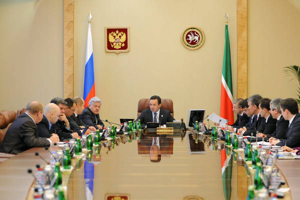 Круглый стол с руководителями исполнительных комитетов муниципальных районов и городских округов Республики Татарстан Проводит Первый заместитель Премьер-министра Республики Татарстан Р.Ф.Муратов. Фото Марата Хусаинова.