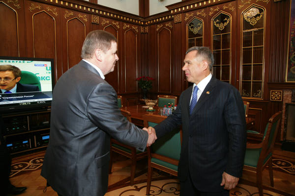 Встреча Президента Республики Татарстан Р.Н. Минниханова с руководителем Приволжского территориального управления Росграницы Корнеевым Сергеем Васильевичем. Фото М.Козловского