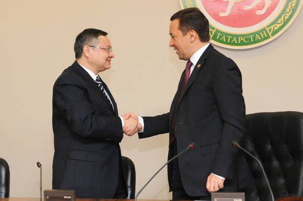 Прибытие в Республику Татарстан делегации Орловской области во главе с губернатором Александром Петровичем Козловым Встречает Президент Республики Татарстан Р.Н.Минниханов. фото Р.Кадырова.