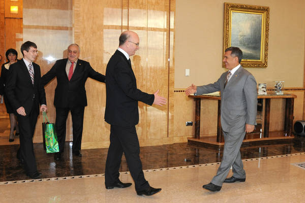 Встреча Президента Республики Татарстан Р.Н. Минниханова с Чрезвычайным и Полномочным Послом Алжирской Народной Демократической Республики в Российской Федерации г-ном Смаилом Шерги. Фото Р.Сафина