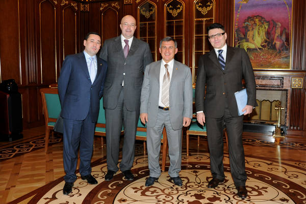 Встреча Президента Республики Татарстан Р.Н. Минниханова с Зам.Министра связи и массовых коммуникаций РФ Жаровым А.А. и Ген.директором АНО "Спортивное вещание" Кикнадзе В.А. Фото Р.Сафина