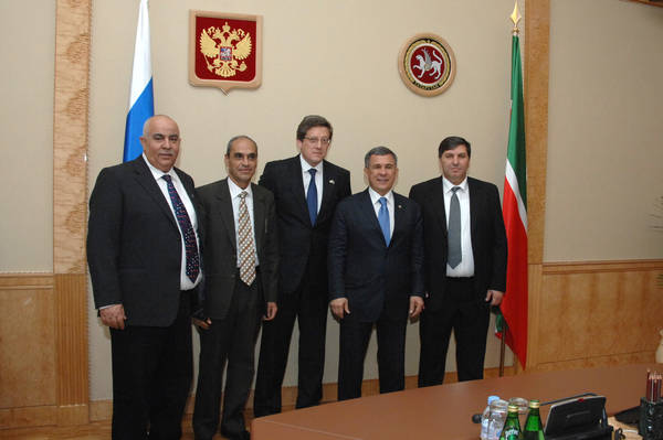 Встреча Президента Республики Татарстан Р.Н. Минниханова с губернатором областного совета Гильбоа (Израиль) Дани Атаром и губернатором округа Дженин (Палестина) Мусой Кадура. Фото Р.Сафина