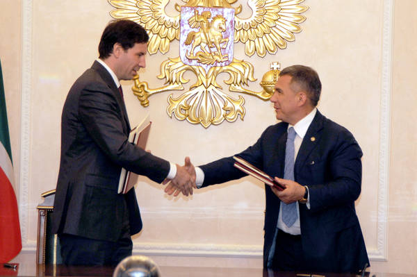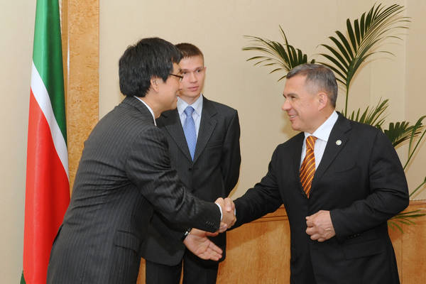 Встреча Президента Республики Татарстан Р.Н. Минниханова с Вице-Президентом компании «Колон» Санг-Хо Шин. фото Р.Кадырова.