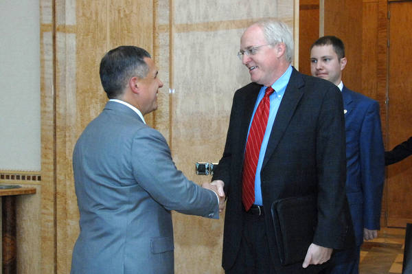 Встреча Президента Республики Татарстан Р.Н.Минниханова с послом США в Российской Федерации Джоном Байерли. Фото Р.Сафина