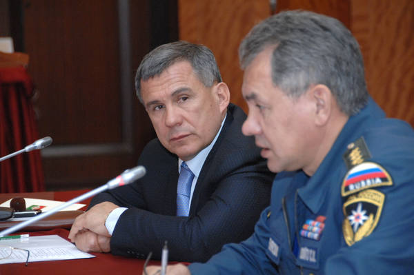 Рабочая поездка в Республику Татарстан Министра Российской Федерации по делам гражданской обороны, чрезвычайным ситуациям и ликвидации их последствий Сергея Кужугетовича Шойгу Встречает Президента Республики Татарстан Р.Н.Минниханов. Фото Р.Сафина