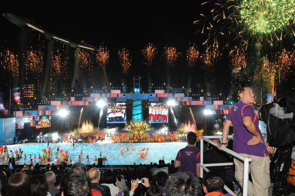Церемония открытия первых юношеских летних Олимпийских игр (Сингапур-2010). Принимает участие Президент Республики Татарстан Р.Н.Минниханов. фото Р.Кадырова.