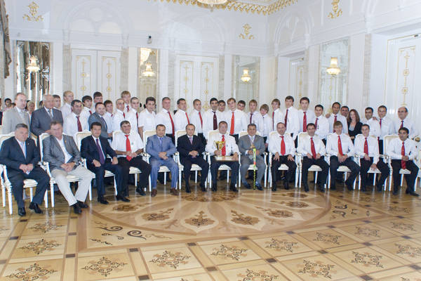 Чествование Президентом Республики Татарстан Р.Н.Миннихановым клуба хоккея на траве «Динамо-Казань». Фото Марата Хусаинова.