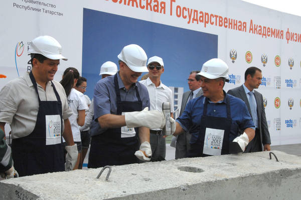 Церемония закладки камня Поволжской государственной Академии физической культуры, спорта и туризма Принимает участие Президент Республики Татарстан Р.Н.Минниханов. Фото Марата Хусаинова.