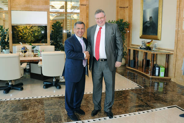 Встреча Президента Республики Татарстан Р.Н.Минниханова с главой представительства BBC WORLD в России Сергеем Серафимовичем Становкиным. фото Р.Кадырова.