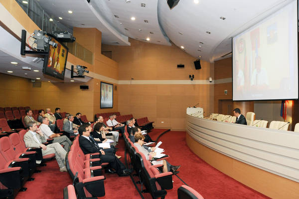 Республиканское совещание в режиме видеоконференции по вопросу строительства жилья для ветеранов Великой Отечественной войны, вставших на учет после 01.03.2005 года Проводит Премьер-министр Республики Татарстан И.Ш.Халиков. фото Р.Кадырова.