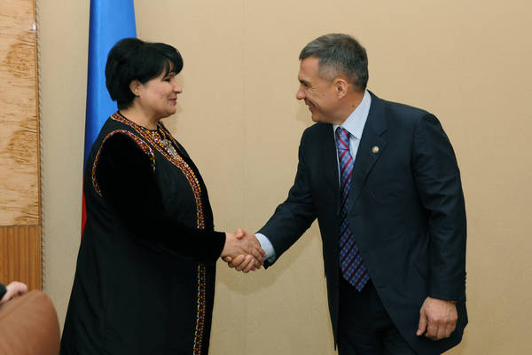 Встреча Премьер-министра Республики Татарстан Р.Н.Минниханова с председателем Меджлиса (Парламента) Туркменистана г-жой А.Т.Нурбердыевой.