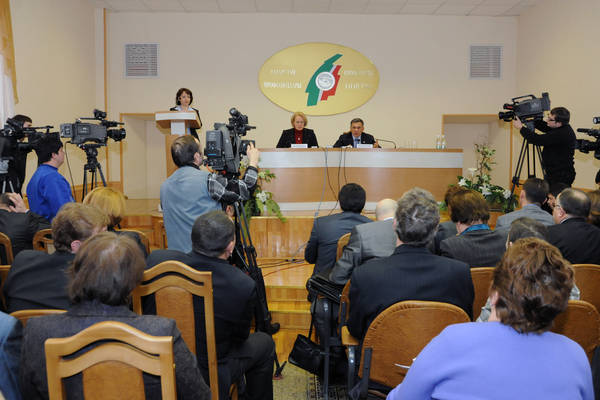 Заседание представительного органа Чистопольского муниципального района с участием Премьер-министра Республики Татарстан Р.Н.Минниханова. Фото Марата Хусаинова.