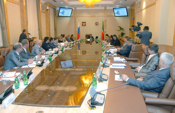 Заседание Совета директоров ОАО "Татнефтехиминвест-холдинг". Проводит Премьер-министр Республики Татарстан, председатель Совета директоров ОАО "Татнефтехиминвест-холдинг" Р.Н.Минниханов