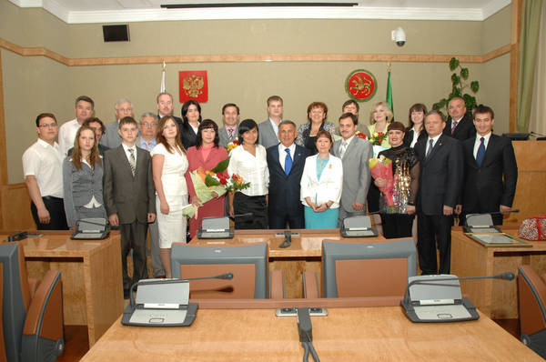Церемония награждения лауреатов Республиканской премии им.М.Джалиля 2008-2009 гг., приуроченная ко Дню молодежи. Принимает участие Премьер-министр Республики Татарстан Р.Н.Минниханов. Фото Марата Хусаинова.