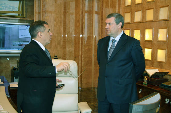Встреча Премьер-министра Республики Татарстан Р.Н.Минниханова с начальником Куйбышевской железной дороги – филиала ОАО "Российские железные дороги" Сергеем Алексеевичем Кобзевым.