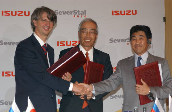 Церемония подписания учредительных документов по созданию в России совместного предприятия "Северстальавто-ИСУДЗУ".