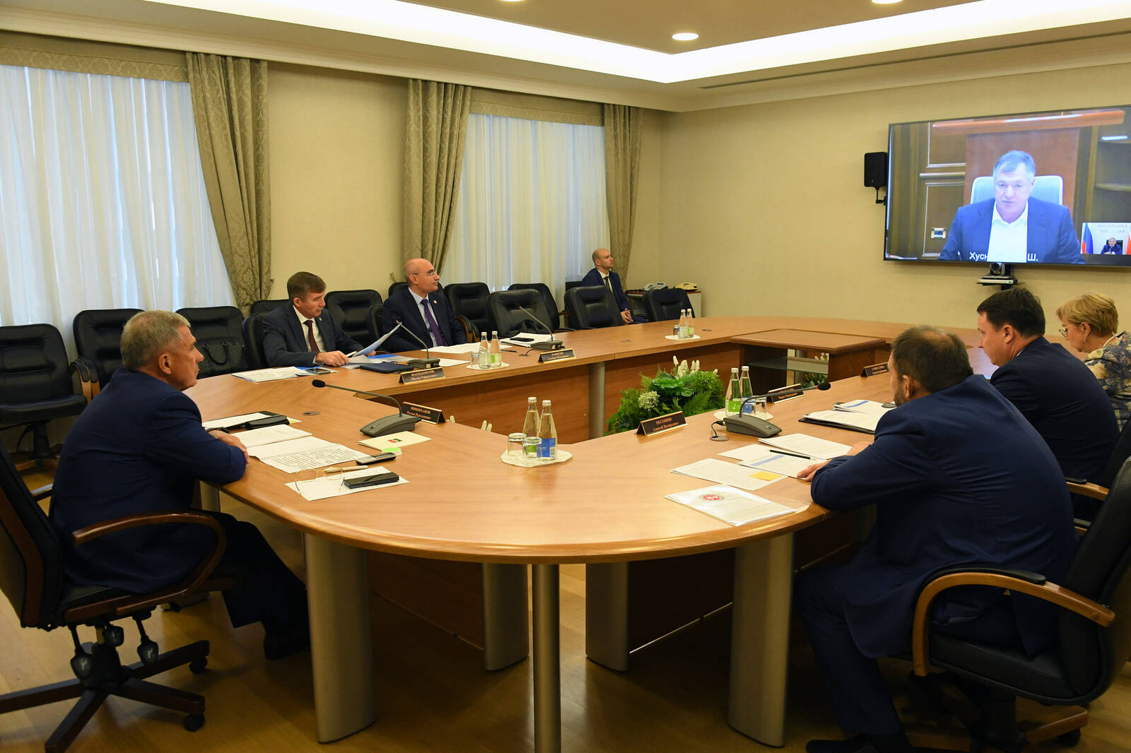 Заседание президиума (штаба) правительственной комиссии по региональному развитию в Российской Федерации. Принимают участие заместитель Председателя Правительства РФ Марат Хуснуллин и Раис Республики Татарстан Рустам Минниханов.
