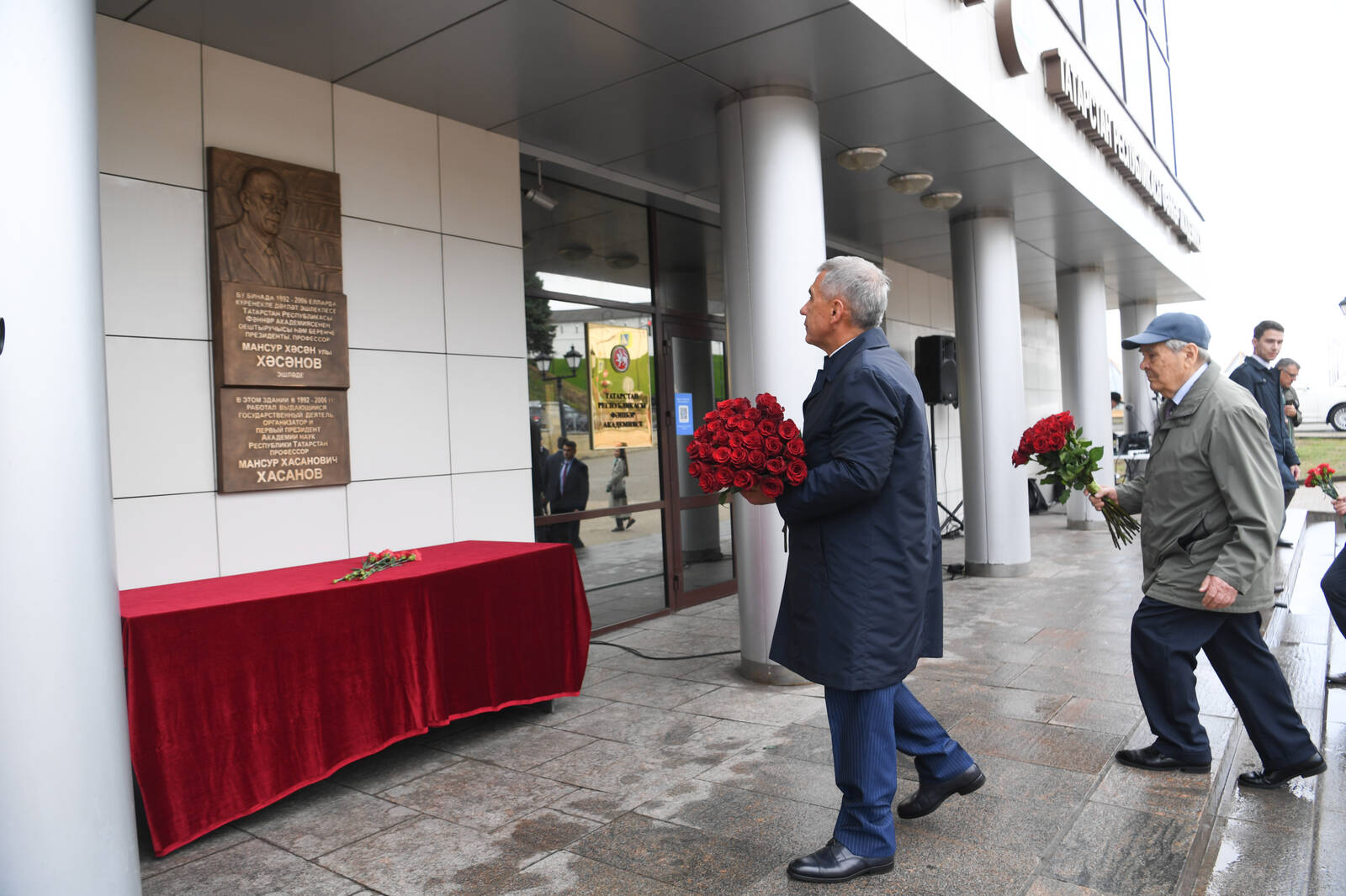 Торжественное открытие мемориальной доски первому Президенту Академии наук Республики Татарстан Мансуру Хасановичу Хасанову.Принимает участие Раис Республики Татарстан Р.Н. Минниханов