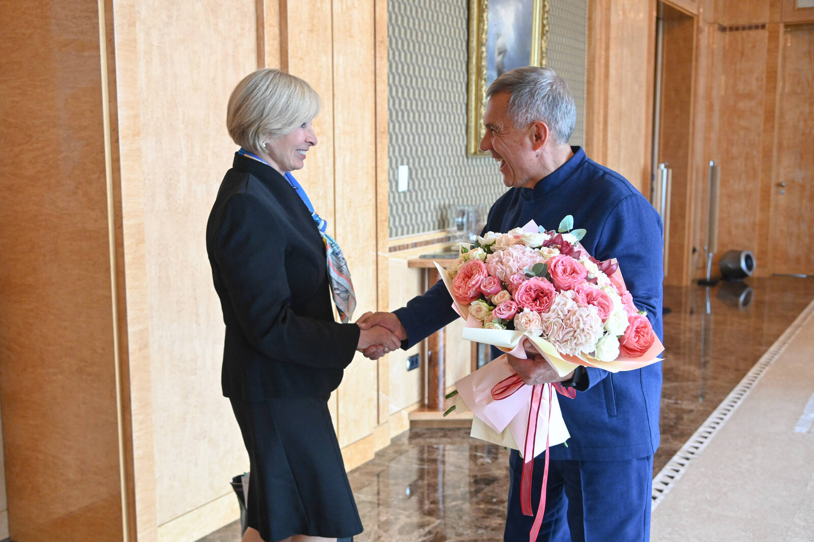 Встреча Раиса Татарстана Рустама Минниханова с советником первого заместителя председателя Банка России Ларисой Селютиной.