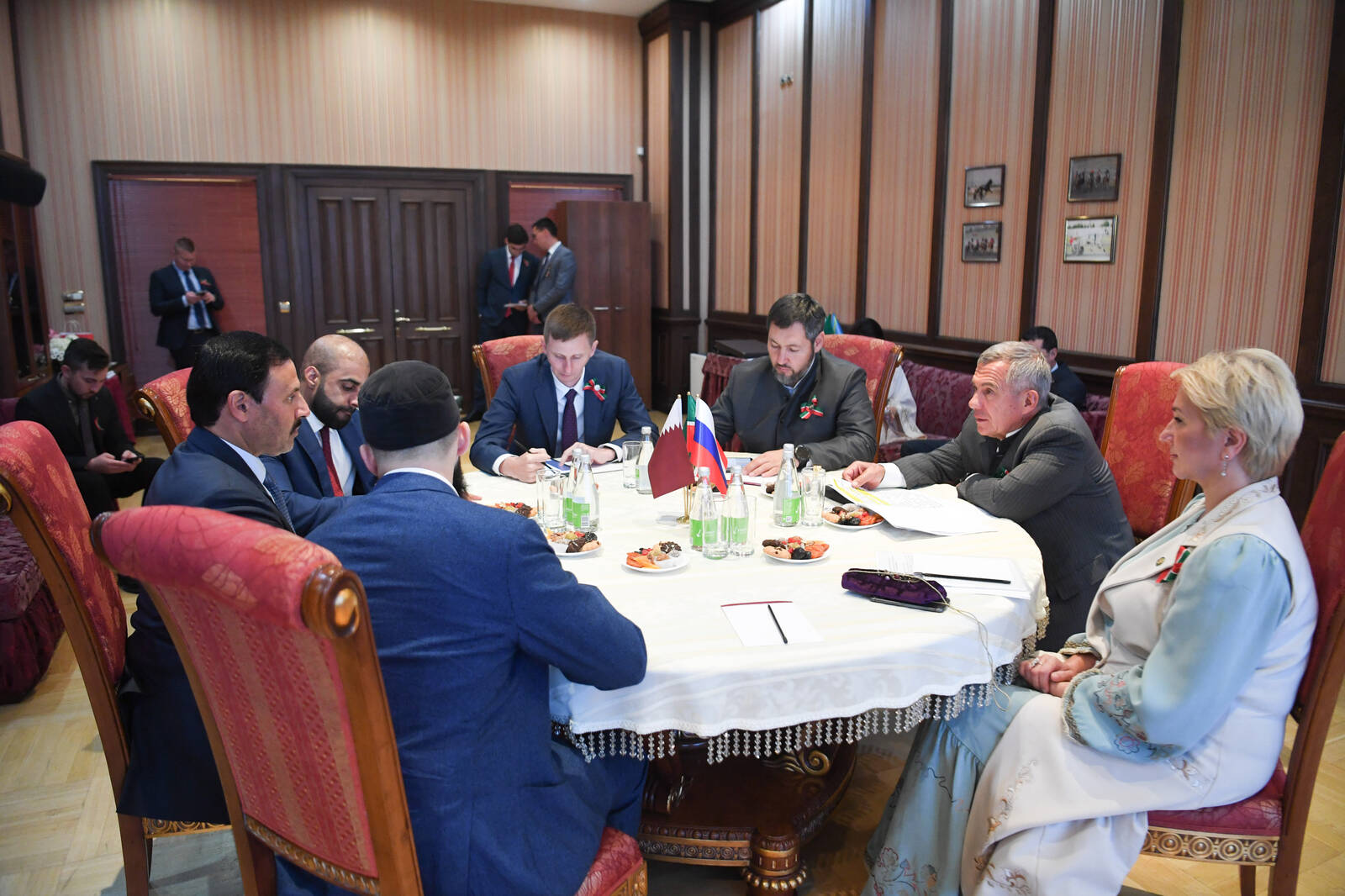 Встреча Раиса Татарстана Рустама Минниханова с чрезвычайным и полномочным послом Государства Катар в России Шейхом Ахмедом бин Нассером бин Джассимом Аль-Тани.