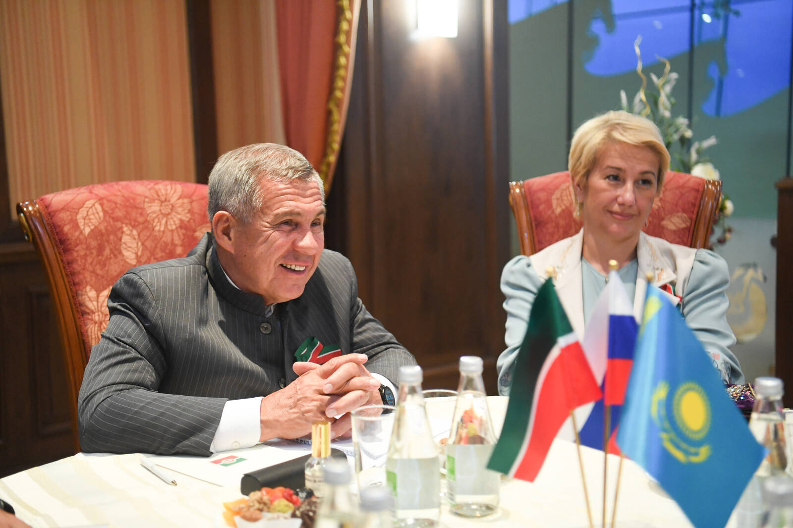 Встреча Раиса Татарстана Рустама Минниханова с чрезвычайным и полномочным послом Республики Казахстан в Российской Федерации Дауреном Абаевым.