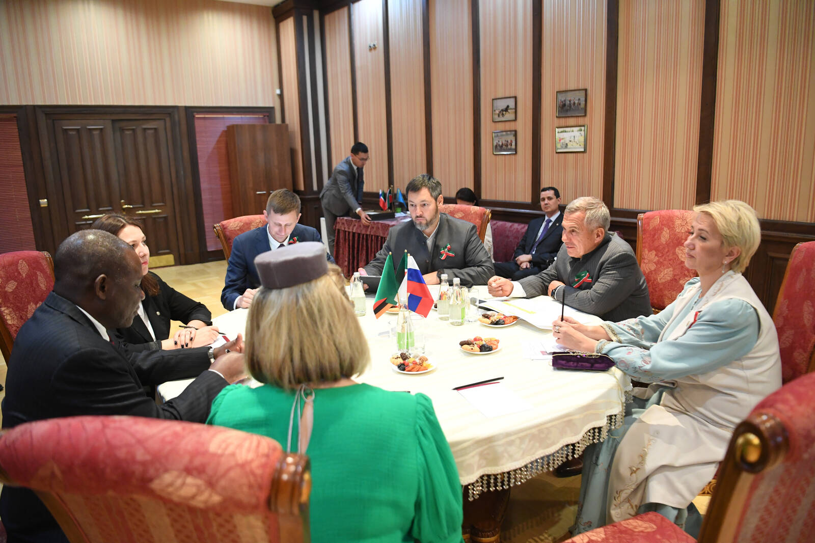 Встреча Раиса Татарстана Рустама Минниханова с чрезвычайным и полномочным послом Замбии в России Шедреком Чингембом Лувита.