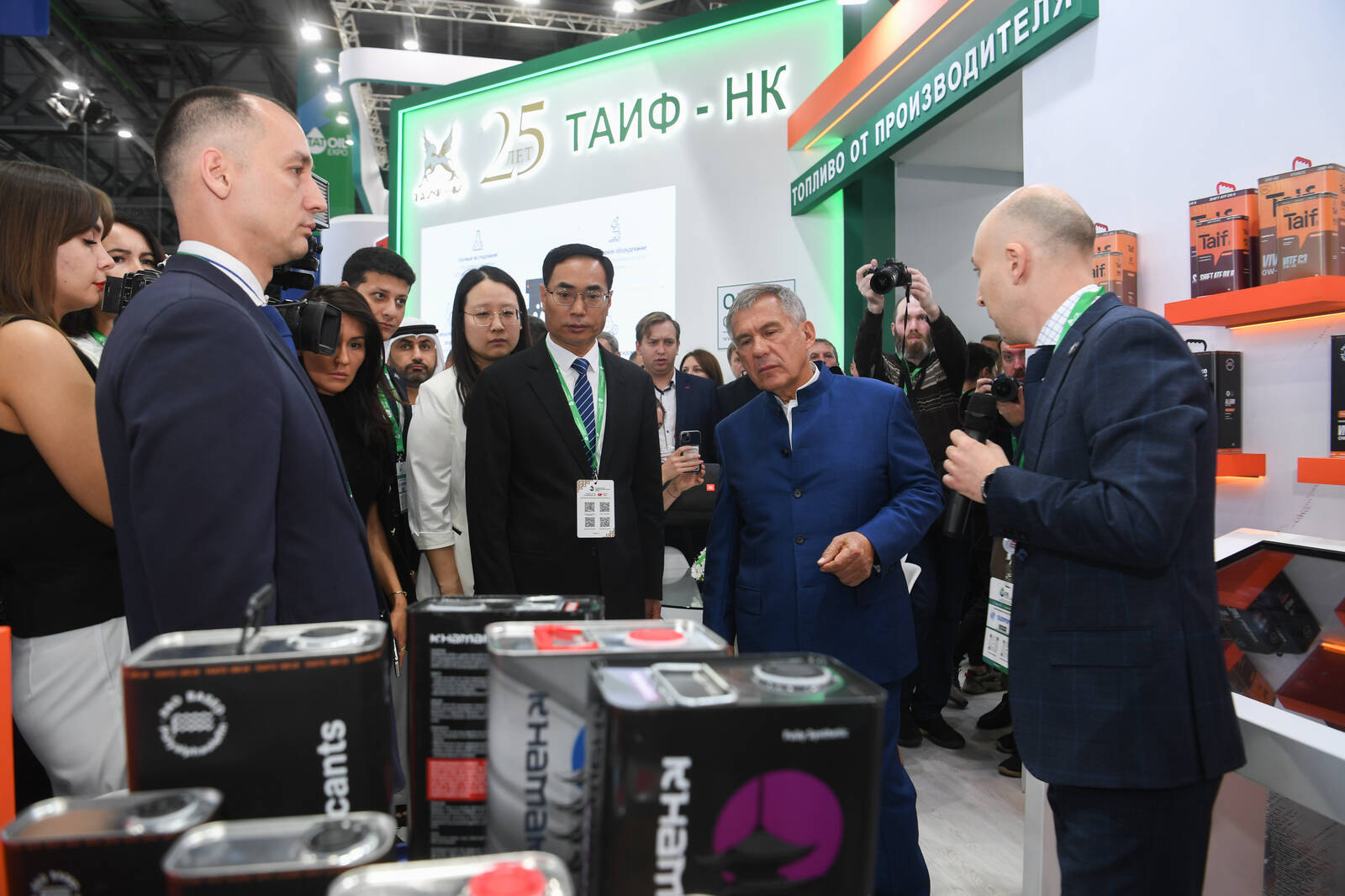 Осмотр специализированной выставки в рамках Татарстанского нефтегазохимического форума. Принимает участие Раис Республики Татарстан Р.Н.Минниханов