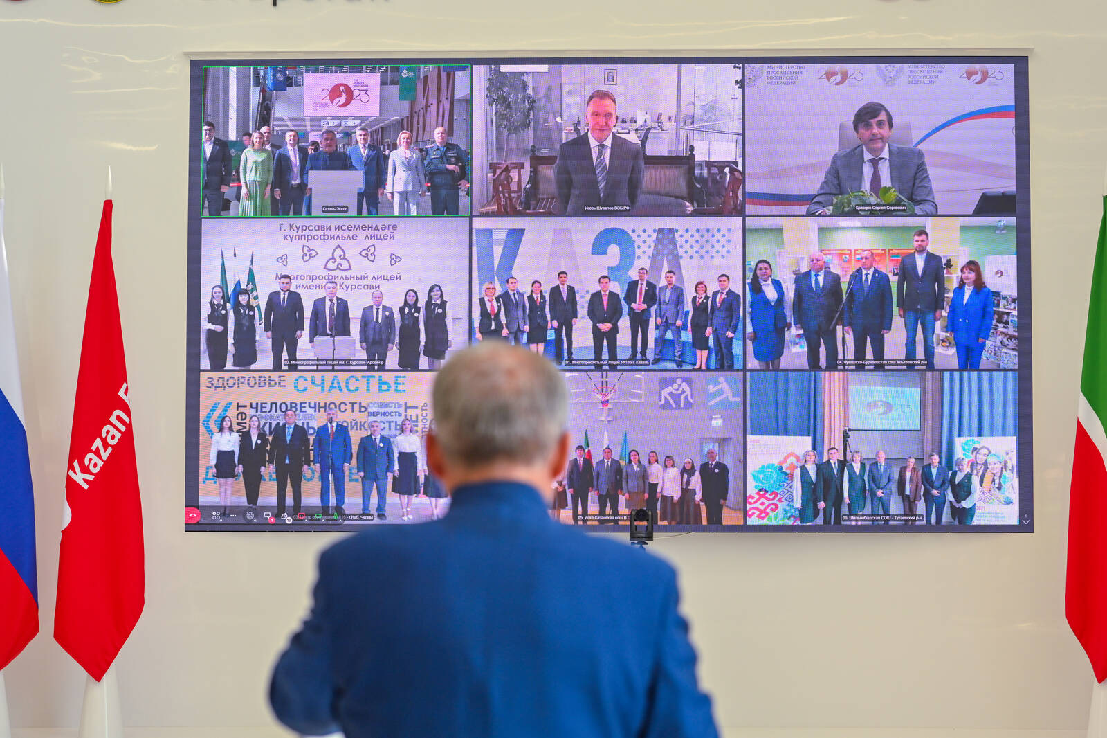 Прием и передача в эксплуатацию новых школ в режиме видеоконференции с участием Раиса Республики Татарстан Р.Н. Минниханова