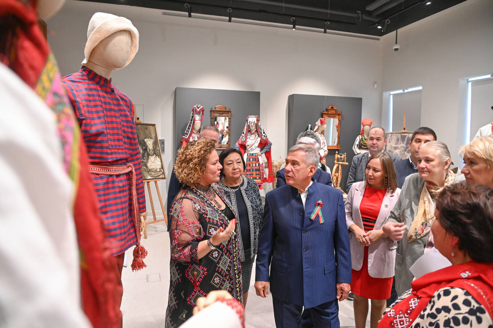 Посещение Раисом Татарстана Рустамом Миннихановым выставки воссозданной традиционной одежды «Казанское Поволжье: образы народной культуры» в Присутственных местах Казанского Кремля.