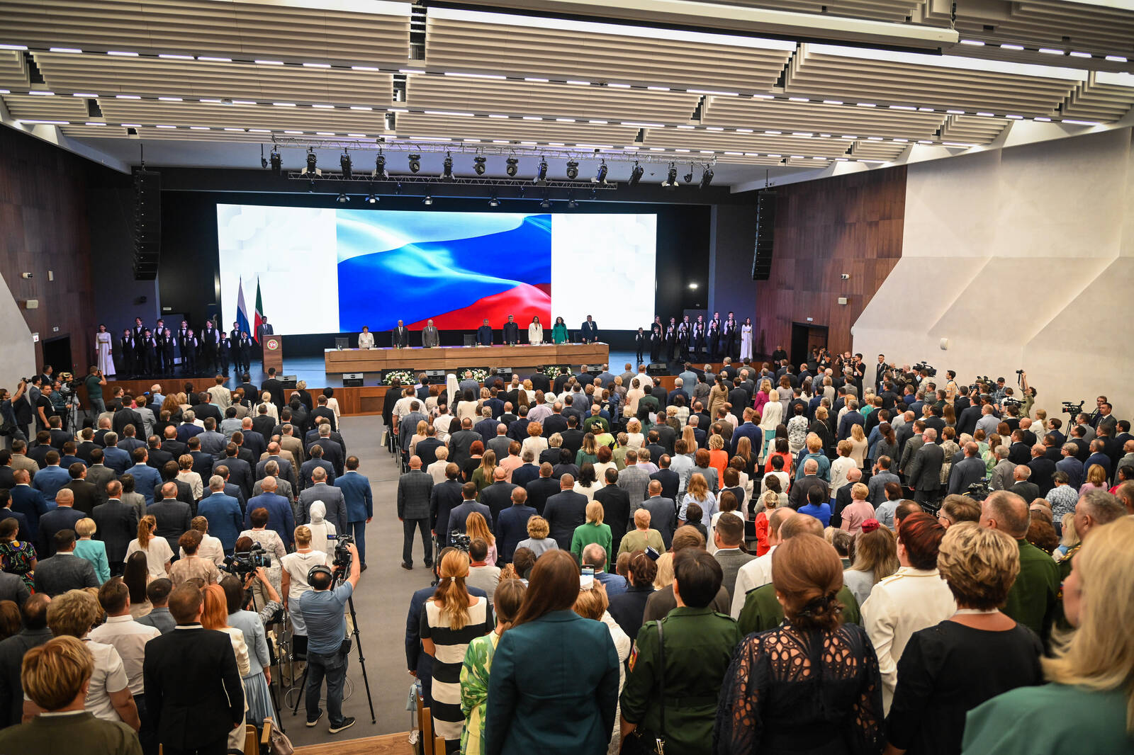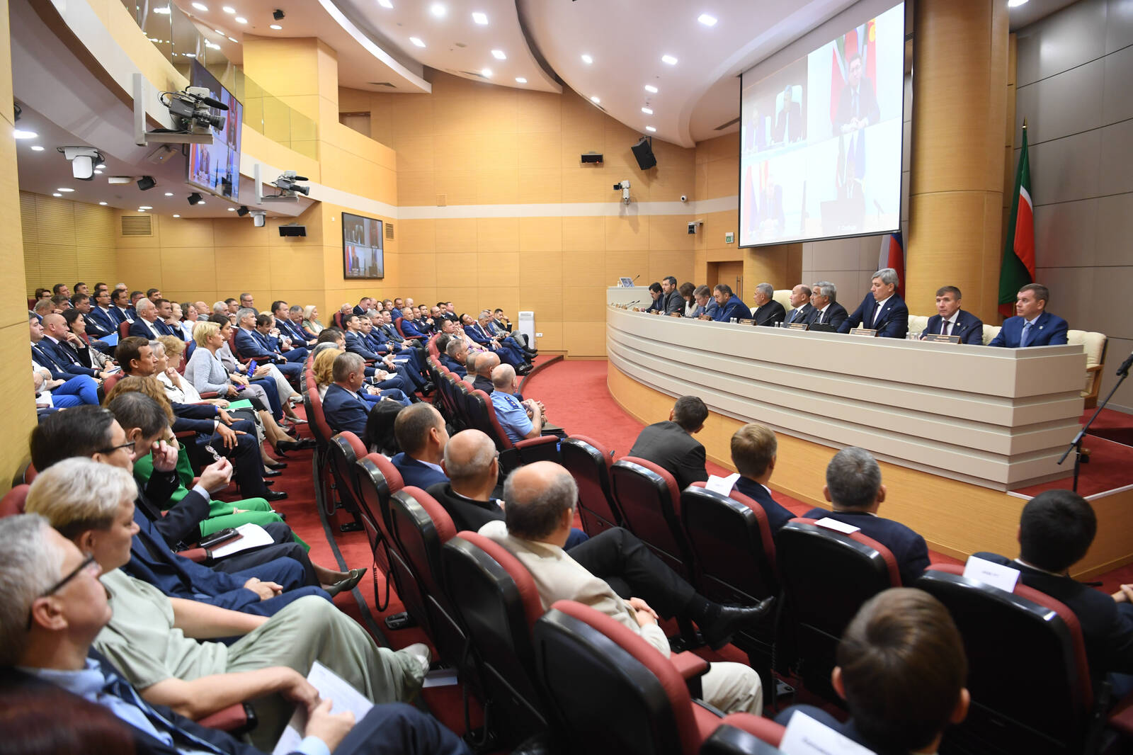 Пленарное заседание Республиканского августовского совещания работников образования и науки "Образование в Республике Татарстан: ключевые задачи, нравственные ориентиры, качественные показатели". Принимают участие Раис Республики Татарстан Р.Н. Минниханов, Государственный Советник Республики Татарстан М.Ш. Шаймиев.