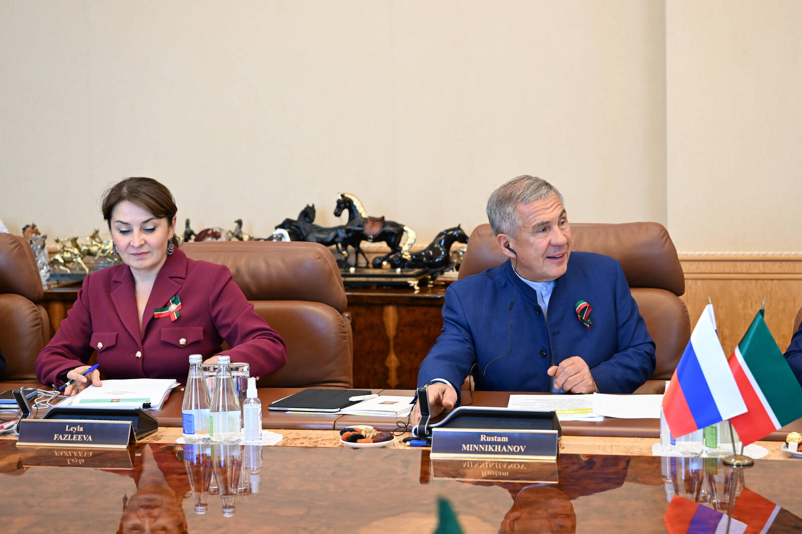 Встреча Раиса Республики Татарстан Р.Н.Минниханова и Министра науки и высшего образования Российской Федерации Валерия Николаевича Фалькова с руководителями иностранных делегаций Казанского глобального молодежного саммита