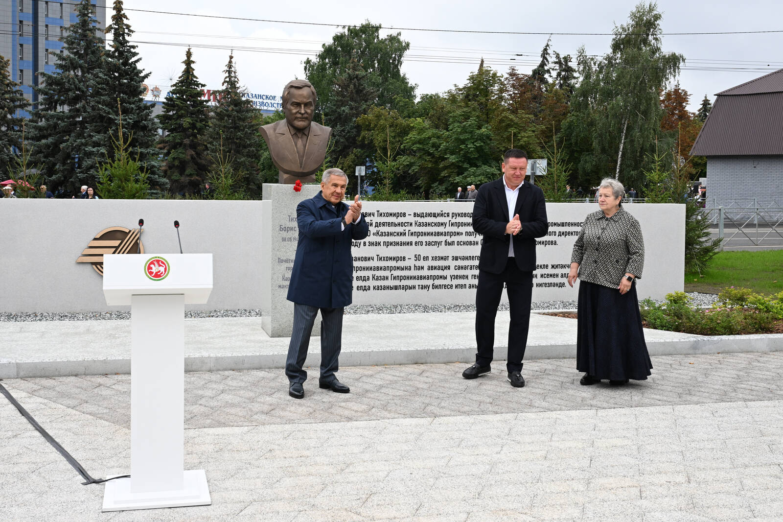 Возложение Раисом Республики Татарстан Р.Н.Миннихановым цветов к бюсту генерального директора АО «Казанский Гипронииавиапром» Б.И.Тихомирова