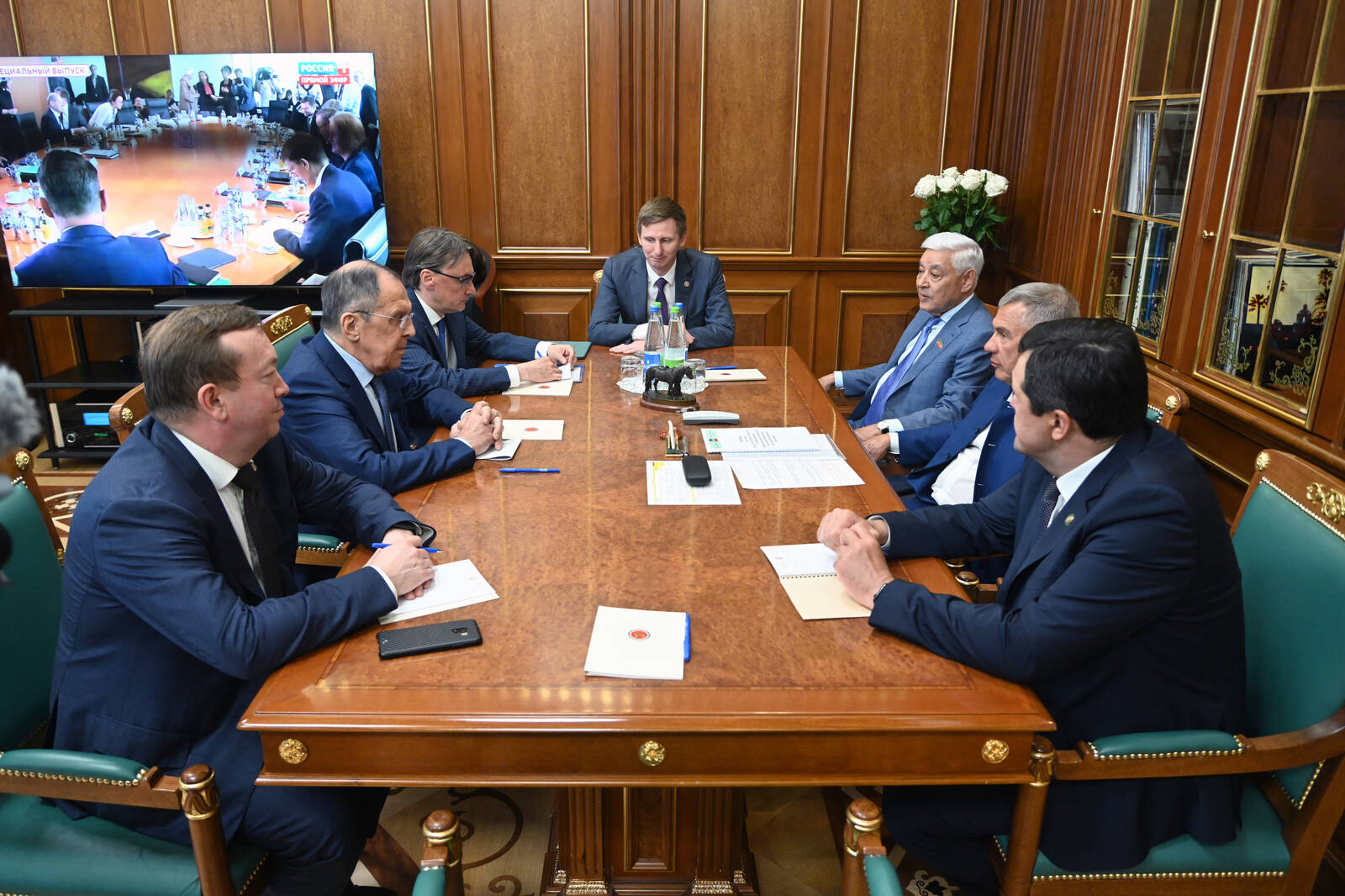 Встреча Раиса Татарстана Рустама Минниханова с министром иностранных дел РФ Сергеем Лавровым.