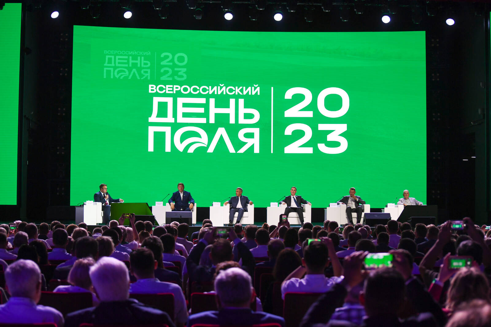 Пленарное заседание выставки «Всероссийский день поля – 2023». Принимают участие Раис Татарстана Рустам Минниханов, министр сельского хозяйства РФ Дмитрий Патрушев и Государственный Советник РТ Минтимер Шаймиев.