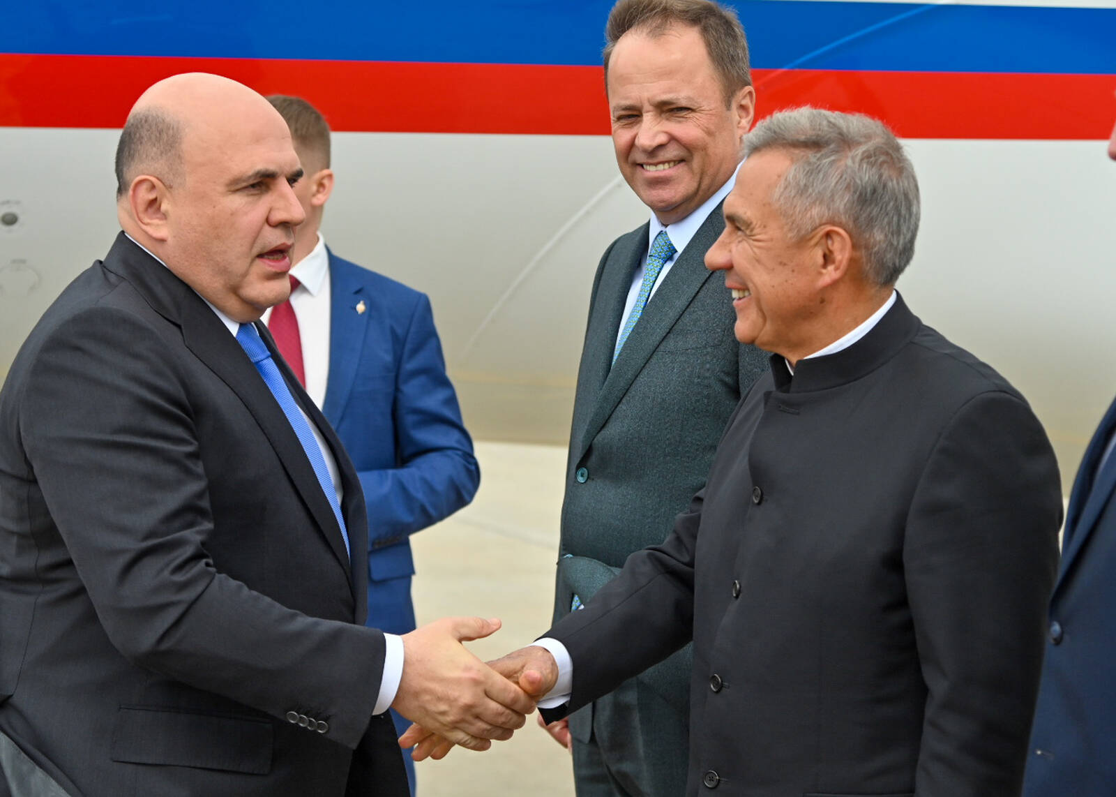 Прибытие в Республику Татарстан Председателя Правительства Российской Федерации М.В. Мишустина. Встречает Раис Республики Татарстан Р.Н. Минниханов.
