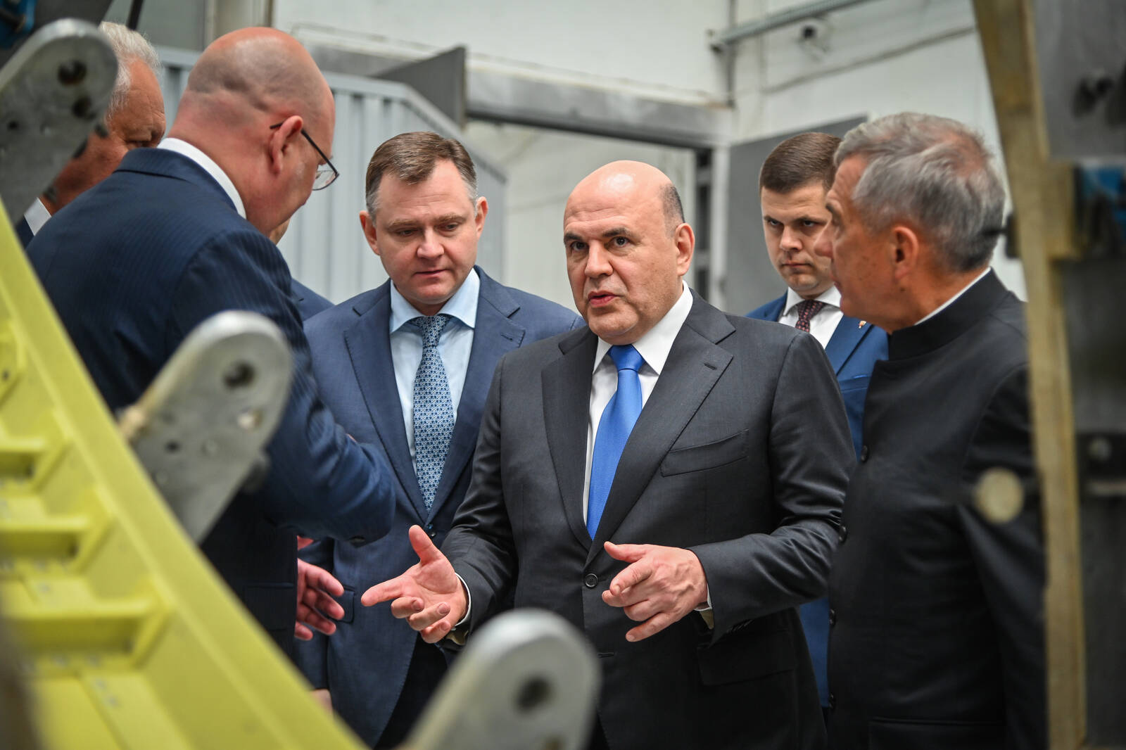 Посещение Председателем Правительства Российской Федерации М.В.Мишустиным и Раисом Республики Татарстан Р.Н.Миннихановым Казанского авиационного завода им. С.П.Горбунова