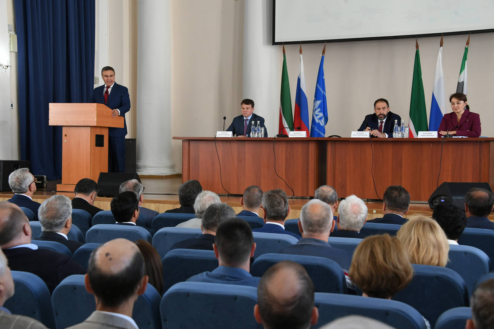 Представление коллективу нового ректора Казанского национального исследовательского технического университета имени А.Н.Туполева. Принимает участие Премьер-министр Республики Татарстан А.В. Песошин и Министр науки и высшего образования Российской Федерации Валерий Николаевич Фальков.