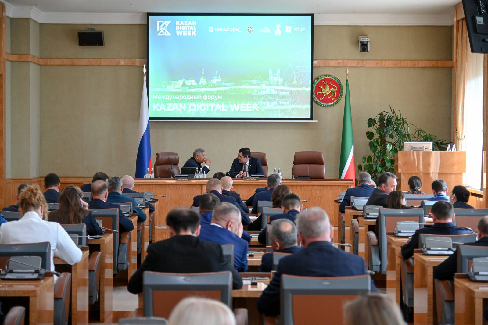 Заседание организационного комитета по подготовке и проведению международного форума Kazan Digital Week – 2025. Проводит министр цифрового развития, связи и массовых коммуникаций Российской Федерации Максут Игоревич Шадаев в режиме ВКС. Принимает участие заместитель Премьер-министра РТ - руководитель Аппарата Кабинета Министров РТ Ш.Х.Гафаров.
