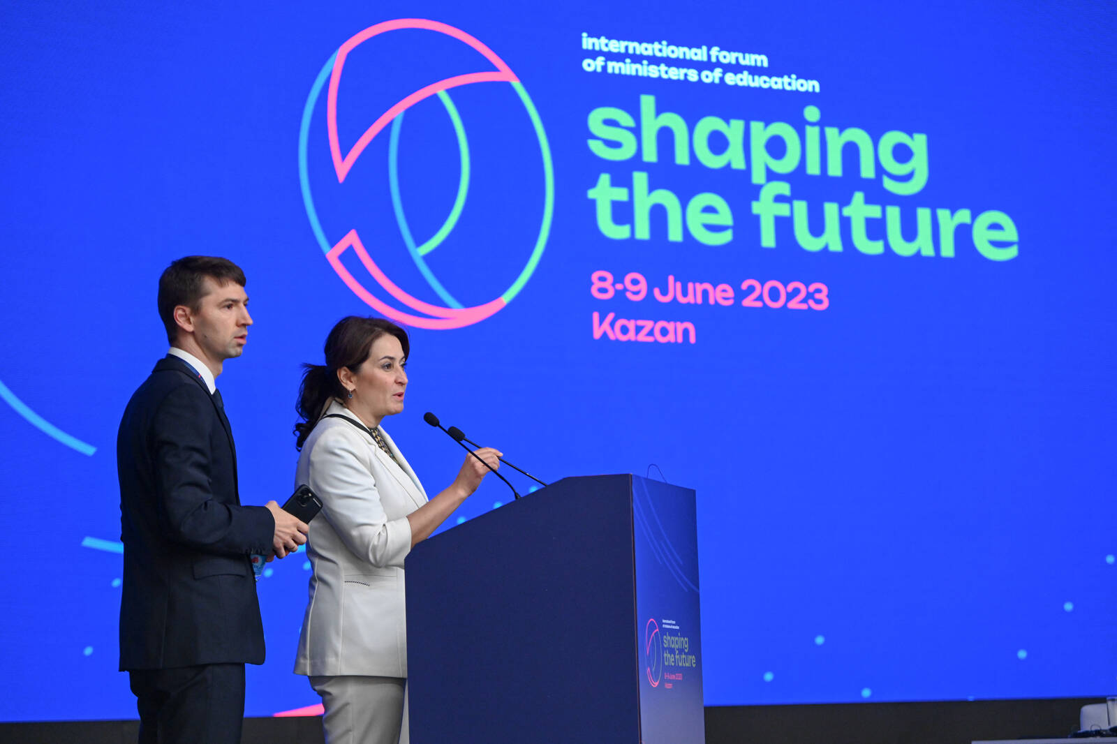 Пленарное заседание Международного форума министров образования "Формируя будущее". Принимают участие Министр просвещения Российской Федерации Кравцов Сергей Сергеевич и Раис Республики Татарстан Р.Н. Минниханов